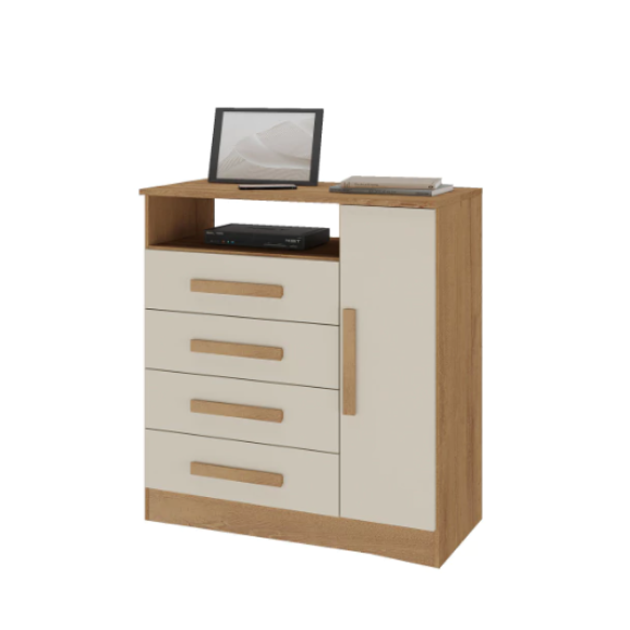 COMODA 1 PORTA 4 GAVETAS DELTA ATUALLE CANELATO RUSTICO / NATURA OFF WHITE (F.L)COMODA 1 PORTA 4 GAVETAS DELTA ATUALLE CANELATO RUSTICO / NATURA OFF WHITE (F.L)