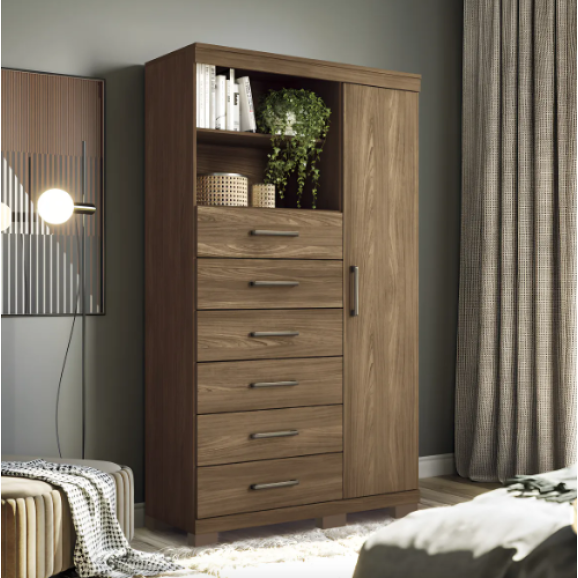 A Cômoda Multiuso Marabá é um móvel incrível que pode ser utilizado em vários ambientes da casa: na cozinha, na garagem, no quarto, na lavandeira. Suas inúmeras utilidades permitem guardar muitos objetos. Possui 6 gavetas amplas com corrediças metálicas e 1 porta com várias prateleiras. É muito espaço para guardar tudo que precisa.