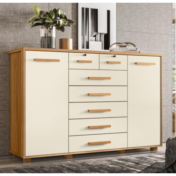 A Cômoda 2 Portas 7 Gavetas Fontana da Albatroz Móveis é a escolha perfeita para quem busca funcionalidade, elegância e durabilidade em um único móvel. Com um design moderno e robusto, esta cômoda é ideal para organizar e decorar o seu quarto de forma prática e sofisticada. Com suas 7 gavetas equipadas com corrediças telescópicas, você terá amplo espaço para armazenar roupas, acessórios e objetos pessoais de forma organizada e acessível. As duas gavetas menores possuem chaves, garantindo a segurança de itens mais delicados ou pessoais. Além das gavetas, a cômoda conta com 2 portas, uma delas com cabideiro para pendurar roupas e a outra com prateleiras para acomodar sapatos, bolsas ou outros objetos. Essa versatilidade de armazenamento torna a Cômoda Fontana um móvel completo e bem distribuído, atendendo às necessidades de organização do seu ambiente. A qualidade dos materiais e o cuidado nos detalhes de fabricação garantem a durabilidade e resistência do produto, proporcionando um investimento seguro e de longa duração para o seu lar. Além disso, a cômoda é fácil de limpar e manter, mantendo sempre a sua beleza e funcionalidade ao longo do tempo. Se você busca por um móvel que una praticidade, elegância e qualidade, a Cômoda 2 Portas 7 Gavetas Fontana da Albatroz Móveis é a escolha certa. Transforme o seu quarto em um ambiente mais organizado e charmoso com esse item indispensável para o seu dia a dia.