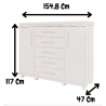 Suas dimensões generosas — 117 cm de altura, 154,8 cm de comprimento e 47 cm de profundidade — fazem dela uma peça robusta, perfeita para quem precisa de espaço sem abrir mão do bom gosto.