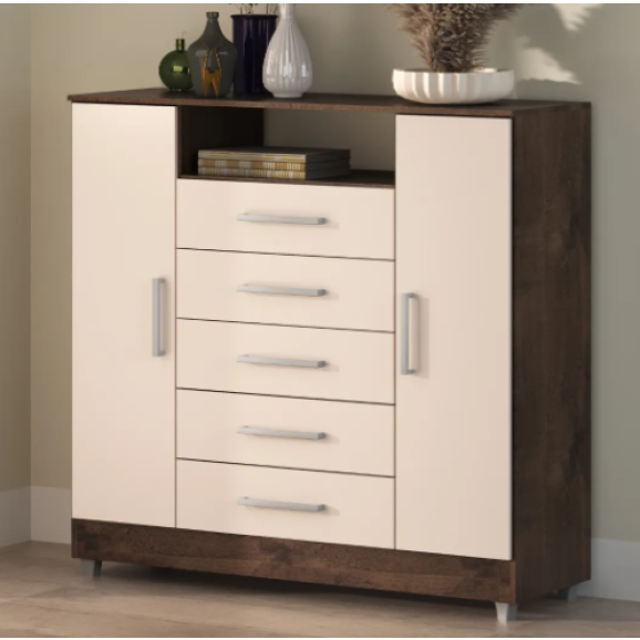 A Cômoda Isabele é perfeita para quem busca um móvel completo, elegante e funcional. Com 5 gavetas espaçosas, 2 portas com 4 prateleiras internas e um nicho multifuncional, ela oferece amplo espaço para organizar roupas, acessórios, perfumes, eletrônicos e objetos decorativos – tudo com um visual moderno e sofisticado.