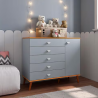 Com suas 5 gavetas espaçosas, esse móvel é projetado para áreas infantis e proporciona um amplo espaço de armazenamento para suas roupas, acessórios e objetos pessoais, mantendo tudo organizado e ao alcance das mãos. Além disso, as corrediças telescópicas permitem um deslizamento suave e silencioso, facilitando o acesso aos itens guardados.