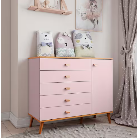 Com suas 5 gavetas espaçosas, esse móvel é projetado para áreas infantis e proporciona um amplo espaço de armazenamento para suas roupas, acessórios e objetos pessoais, mantendo tudo organizado e ao alcance das mãos. Além disso, as corrediças telescópicas permitem um deslizamento suave e silencioso, facilitando o acesso aos itens guardados.