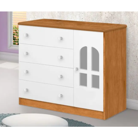 A Cômoda Infantil Alvin vai trazer para seu ambiente mais conforto e leveza. Produzida em MDP/MDF com seu acabamento sendo pintura UV e verniz brilhante de alta resistência trazendo ao móvel maior durabilidade. Sendo tampo e frentes de gavetas em MDF, vem com 4 gavetas com corrediças metálicas. Porta com aplique em acrílico de altíssima qualidade, dobradiças metálicas, com prateleira em seu espaço interno e puxadores em formato de bola. Desenvolvido para trazer um diferencial decorativo para o ambiente, assim proporcionando tranquilidade com seu design clean. Produto charmoso que irá embelezar e atender sua necessidade!!!