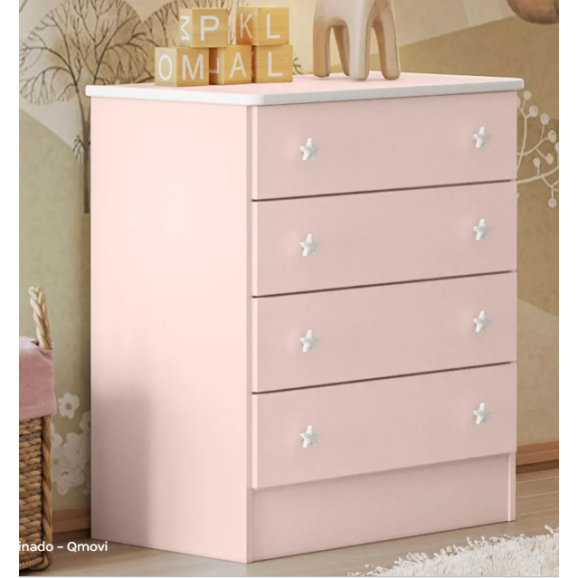 O(a) Cômoda Infantil Doce Sonho 4 Gavetas Rosa Acetinado - Qmovi é produzido em MDP na escala de brilho Alto Brilho, e possui um grau de dificuldade de montagem: Médio.