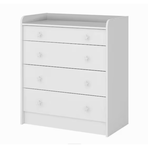 Cômoda Infantil Trocador Doce Sonho , que possui tudo o que você precisa para deixar as roupas e acessórios do bebê organizados com total conforto e praticidade estrutura reforçada confeccionada em MDP de qualidade com acabamento em pintura UV que proporciona maior durabilidade e resistência ao produto, design exclusivo para deixar o quarto do seu bebê mais bonito. Possui 4 gavetas com excelente profundidade, puxadores exclusivos em formato de estrela e espaço para trocador facilitando na hora de trocar o bebê.