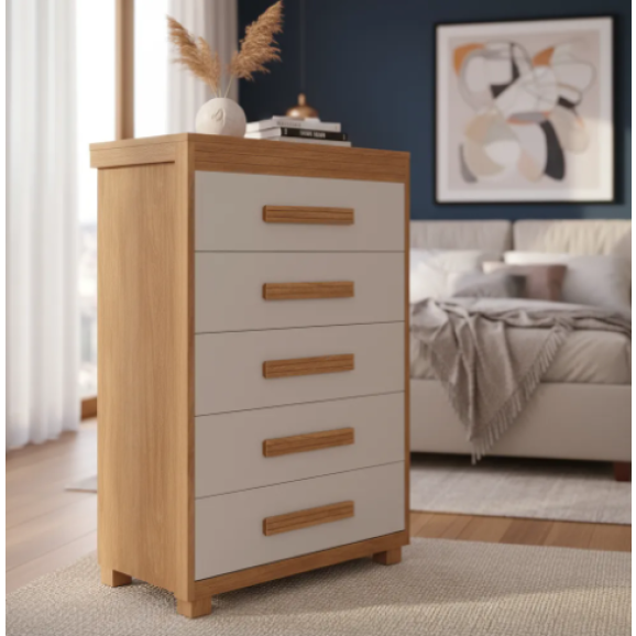 A Cômoda Paris (Antiga Sofia) é excelente para você deixar tudo mais organizado, além de linda, ela possui 5 gavetas, todas com corrediças telescópicas, reforço no fundo das gavetas fixado com minifix para maior durabilidade e melhor resistência.