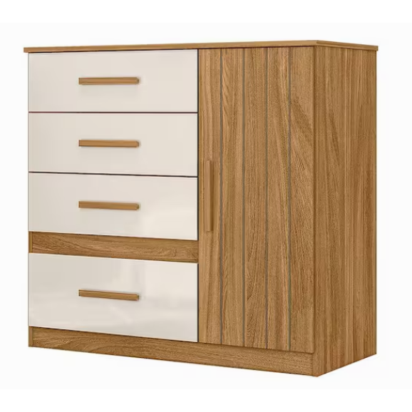 Está montando seu quarto? Apresentamos para você esta bela cômoda da linha Vênus. Possuindo uma porta, apresenta detalhe frisado agregando mais charme e sofisticação. Contando com quatro gavetas equipadas com corrediças metálicas, proporciona uma abertura suave e segura. Os puxadores em MDF dão um acabamento refinado, dando um design moderno. Fabricado pela Moval, é desenvolvido em MDP de alta qualidade, combinando durabilidade e um visual minimalista. Complementando seu quarto de forma organizada e elegante, aproveite!