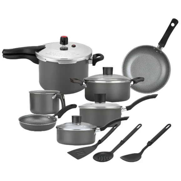 Jogo De Panelas 5 Peças Alumínio Antiaderente Cinza Alegrete Com Panela De Pressão