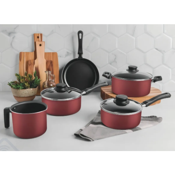 Jogo de Panelas Tramontina Caribe com Revestimento Interno e Externo em antiaderente Starflon Max Vermelho 05 Peças