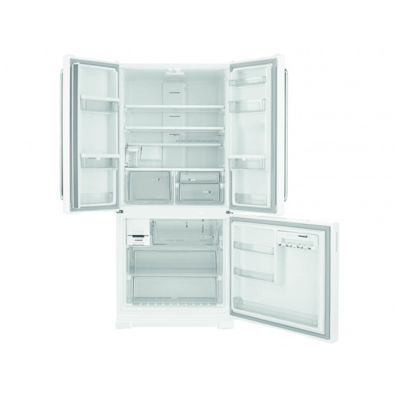 Geladeira/Refrigerador Side Inverse 03 portas French Door Ative! da Brastemp. É um refrigerador Frost Free com capacidade de 540 litros, classificação energética A e faz parte de uma nova geração de geladeiras: pequena por fora e gigante por dentro. Com o freezer na parte de baixo, tudo o que você mais usa fica ao alcance das suas mãos. Possui painel eletrônico, 4 prateleiras de vidro, 2 cestos, 3 gavetas para frutas, frios e verduras, porta ovos, porta garrafas, alarme com sensor de porta aberta e pés reguláveis. Além disso, possui dispenser de gelo interno, o Ice Maker. É uma verdadeira fábrica de gelo que produz 12 bandejas de gelo automaticamente, sem precisar de ponto de água. Possui ainda design moderno, é muito prática e vai facilitar muito o seu dia a dia.