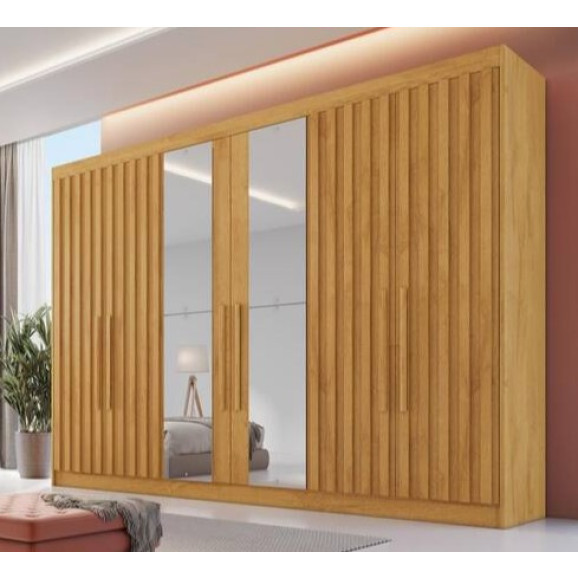 Guarda Roupa 6 Portas 4 Portas Ripadas Potente com Espelho MDF - Móveis Europa - PEROBA