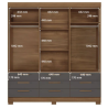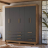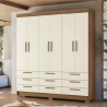 além disso, possui 9 amplas gavetas com corrediças telescópicas. As portas são fixadas por dobradiças em metal, e os puxadores são em MDF revestidos. Este guarda