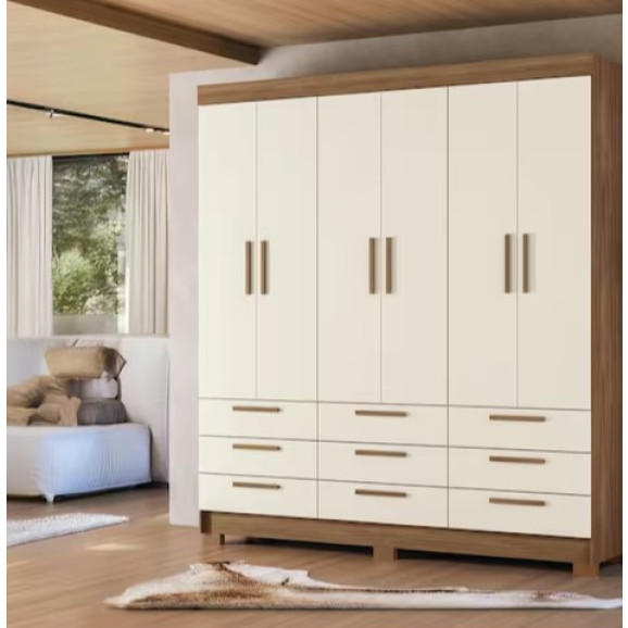 Guarda-roupa 6 Portas 9 Gavetas Mdp Colombo SANTOS ANDIRA Jatobá /AREIA