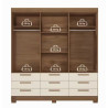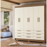 além disso, possui 9 amplas gavetas com corrediças telescópicas. As portas são fixadas por dobradiças em metal, e os puxadores são em MDF revestidos. Este guarda