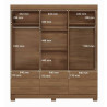 além disso, possui 9 amplas gavetas com corrediças telescópicas. As portas são fixadas por dobradiças em metal, e os puxadores são em MDF revestidos. Este guarda