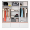 Fabricado com chapas de MDP, corrediças telescópicas nas gavetas e revestimento em pintura UV ou Finish Foil, o guarda-roupa Monza apresenta estrutura e acabamento super-resistentes.