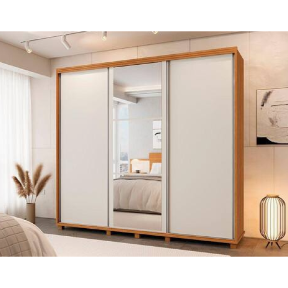 Guarda Roupas Casal 03 Portas de Correr Berlin Com Espelho Camas Fenix