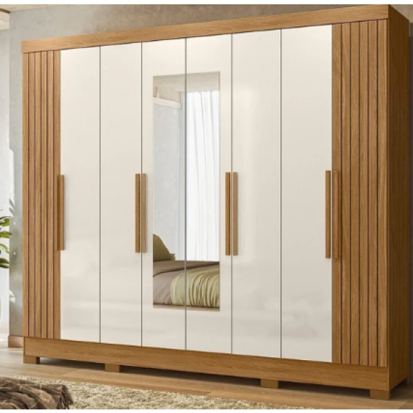 Com oito portas de giro e quatro gavetas espaçosas, o Guarda-Roupa Diplomata une
