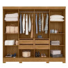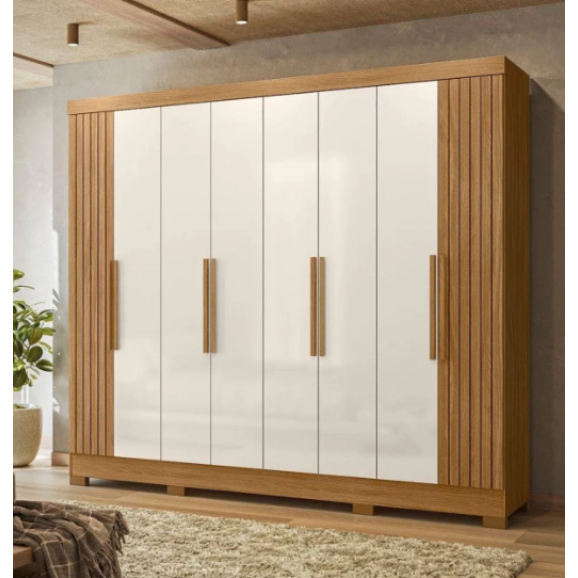 Com oito portas de giro e quatro gavetas espaçosas, o Guarda-Roupa Diplomata une beleza e funcionalidade. Os cabideiros em alumínio e os puxadores em MDF garantem praticidade no dia a dia. As portas em MDF com detalhes frisados opcionais e espelhos agregam sofisticação ao ambiente. -
