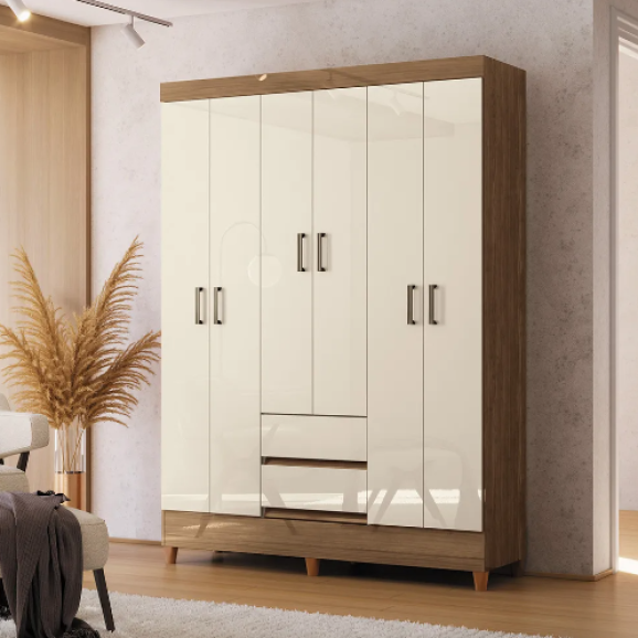 O Guarda-Roupa Fit 6 Portas é compacto, funcional e conta com excelente aproveitamento interno. Seu acabamento moderno e design prático tornam esse móvel perfeito para quem deseja unir beleza, organização e durabilidade em um só produto.