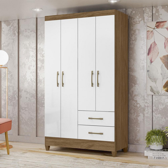 Guarda-Roupa Chile 4 Portas - Naturale/Branco - Moval