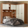 No módulo sobre a cama, é possível armazenar travesseiros, cobertores, roupas de cama e outros itens. Além de nichos que são perfeitos para somar na decoração, conta também com espaço para colchão de 1,38m.