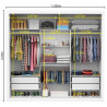 Possui em seu interior 4 gavetas e 4 prateleiras para guardar suas roupas de cama, banho e o que mais for preciso, com a elegância e qualidade.