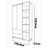 Os pés plásticos garantem estabilidade e segurança, enquanto os puxadores plásticos acrescentam um toque moderno ao design do armário.