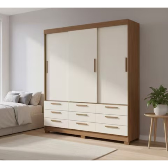 Ampla Capacidade E Funcionalidade Inteligente. O Guarda-roupa Casal Santos Andirá Morretes É A Escolha Ideal Para Quem Busca Espaço, Praticidade E Um Design Sofisticado. Com 194,4 Cm De Largura, Ele Conta Com 3 Portas De Correr Que Deslizam Suavemente Sobre Trilhos De Alumínio Com Freios, Permitindo Ajustar A Abertura Conforme A Necessidade. Internamente, O Móvel Oferece 4 Prateleiras Funcionais, Cabideiros Em Alumínio E 9 Gavetas Espaçosas Com Corrediças Telescópicas, Ideais Para Armazenar Roupas, Acessórios E Itens Pessoais Com Total Organização. Seu Projeto Inteligente É Perfeito Para Quartos Com Espaços Mais Ajustados, Aproveitando Cada Centímetro Com Eficiência. Design Moderno E Produção Sustentável. Além De Funcional, O Guarda-roupa Morretes Se Destaca Pelo Acabamento Em Pintura Fosca, Que Confere Um Visual Elegante Em Todas As Opções De Cores. Os Puxadores São Em Mdf Revestido, Combinando Resistência Com Um Toque Moderno, E Os Pés Em Pvc Já Acompanham O Móvel, Podendo Ser Instalados Conforme A Preferência Do Consumidor. Produzido Seguindo Rigorosos Padrões De Sustentabilidade, Ele Alia Beleza, Durabilidade E Respeito Ao Meio Ambiente. Um Móvel Completo E De Alta Qualidade, Ideal Para Compor Com Estilo E Praticidade O Quarto Do Casal.