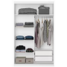 Compacto por fora e espaçoso por dentro, esse Guarda-Roupa da Bartira possui duas práticas gavetas, um cabideiro, maleiro e três prateleiras, para acomodar desde roupas de cama até objetos pessoais. Ah, e ainda tem um nicho inferior, que pode ser usado como sapateira.