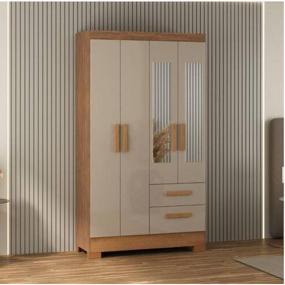 Guarda Roupa Solteiro Com Espelho 4 Portas Fortaleza Plus Acacia Com Reflecta