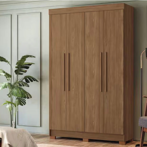 O Guarda-Roupa Solteiro Santos Andirá Sarandi, com 4 portas, 2 gavetas e 4 prateleiras, é uma solução completa para quem busca praticidade e amplo espaço em um só móvel. Com 130 cm de largura, ele oferece uma estrutura bem distribuída para acomodar roupas e objetos de forma funcional. As quatro portas revelam prateleiras ideais para roupas dobradas e cabideiros em alumínio para peças penduradas, mantendo tudo sempre organizado. As duas gavetas internas são espaçosas e contam com corrediças telescópicas, garantindo abertura suave e durabilidade no uso diário.