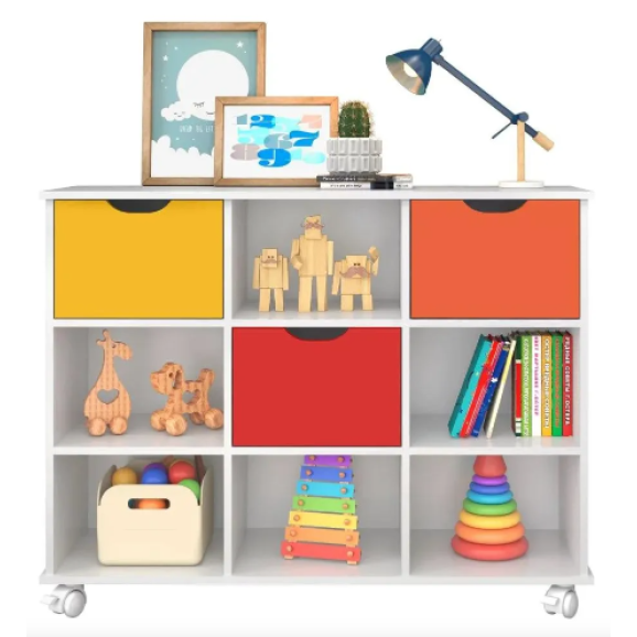 Um móvel versátil e funcional que pode ser usado em diversos ambientes da casa. Ele possui 6 Nichos Abertos para livros, objetos decorativos, brinquedos ou o que mais você quiser. Além disso o Nicho Organizador, ele conta com 3 gavetas com detalhe curvado que dispensa puxadores e dá um design minimalista ao móvel. O Nicho com Gavetas é feito de MDP de alta qualidade e tem acabamento em pintura UV que garante maior durabilidade e resistência. Ah e ele ainda possui rodízios que facilitam a movimentação e a limpeza do espaço.