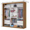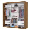 O Guarda-Roupa Clara com 3 portas de correr, combinado com 4 gavetas, 4 prateleiras e 3 cabideiros, deixa o produto com uma divisão funcional capaz de proporcionar ao cliente acomodar todas as suas roupas de maneira mais organizada e com maior visibilidade.