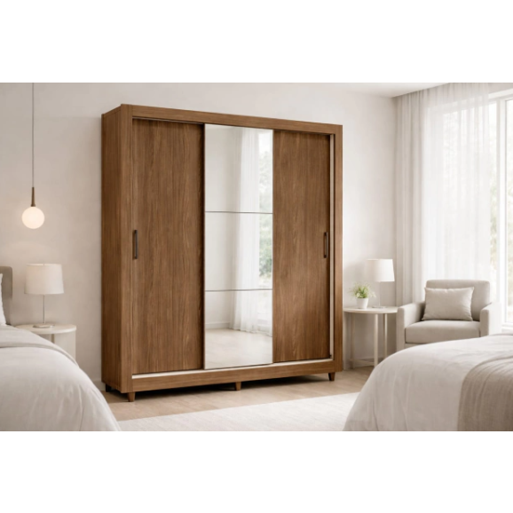 O guarda roupas França é uma excelente escolha para quem procura, funcionalidade e um design moderno. Com puxadores em ABS, enquanto os pés em PVC proporcionam estabilidade e durabilidade ao móvel. No interior, as gavetas internas com corrediças metálicas oferecem um deslizamento eficiente, ótimas para organizar roupas e acessórios com facilidade. O espelho centralizado, você poderá se arrumar de maneira prática, cabideiros em alumínio, proporcionando amplo espaço para pendurar suas roupas, mantendo organizadas e sem amassar. As amplas prateleiras, sendo perfeitas para armazenar roupas e outros objetos pessoais, otimizando o uso do espaço. As portas de correr, equipadas com trilho metálico de alumínio, facilitam o uso sem ocupar espaço extra, o que é ideal para ambientes menores. Este modelo é perfeito para quem deseja um guarda roupas espaçoso e organizado para o dia a dia. -