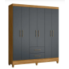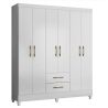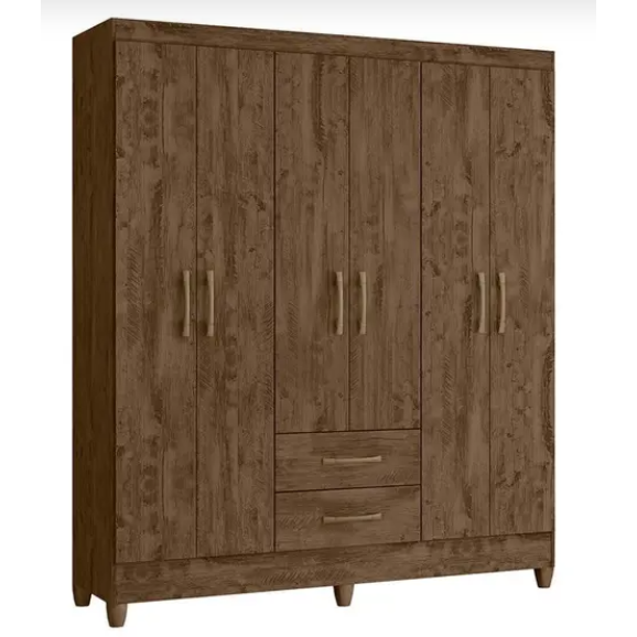 O guarda-roupa Panamá é feito em MDP, possui 6 portas e 2 gavetas com corrediças metálicas. Tem cabideiro e um amplo espaço interno com espaço bem dividido entre as prateleiras -