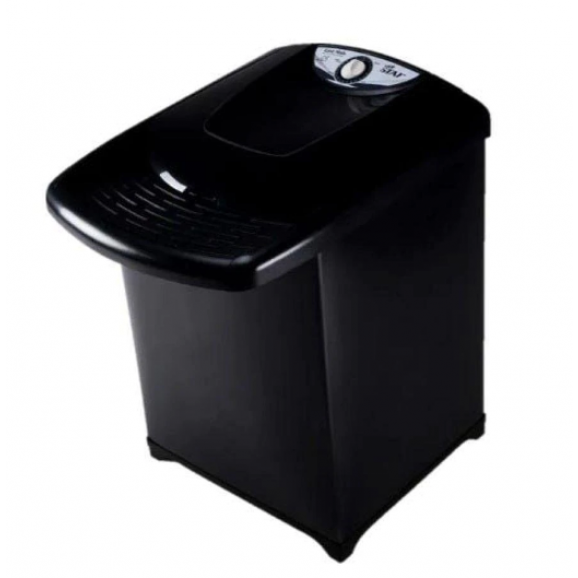 -Com filtro de retenção de resíduos e dispensador de sabão.